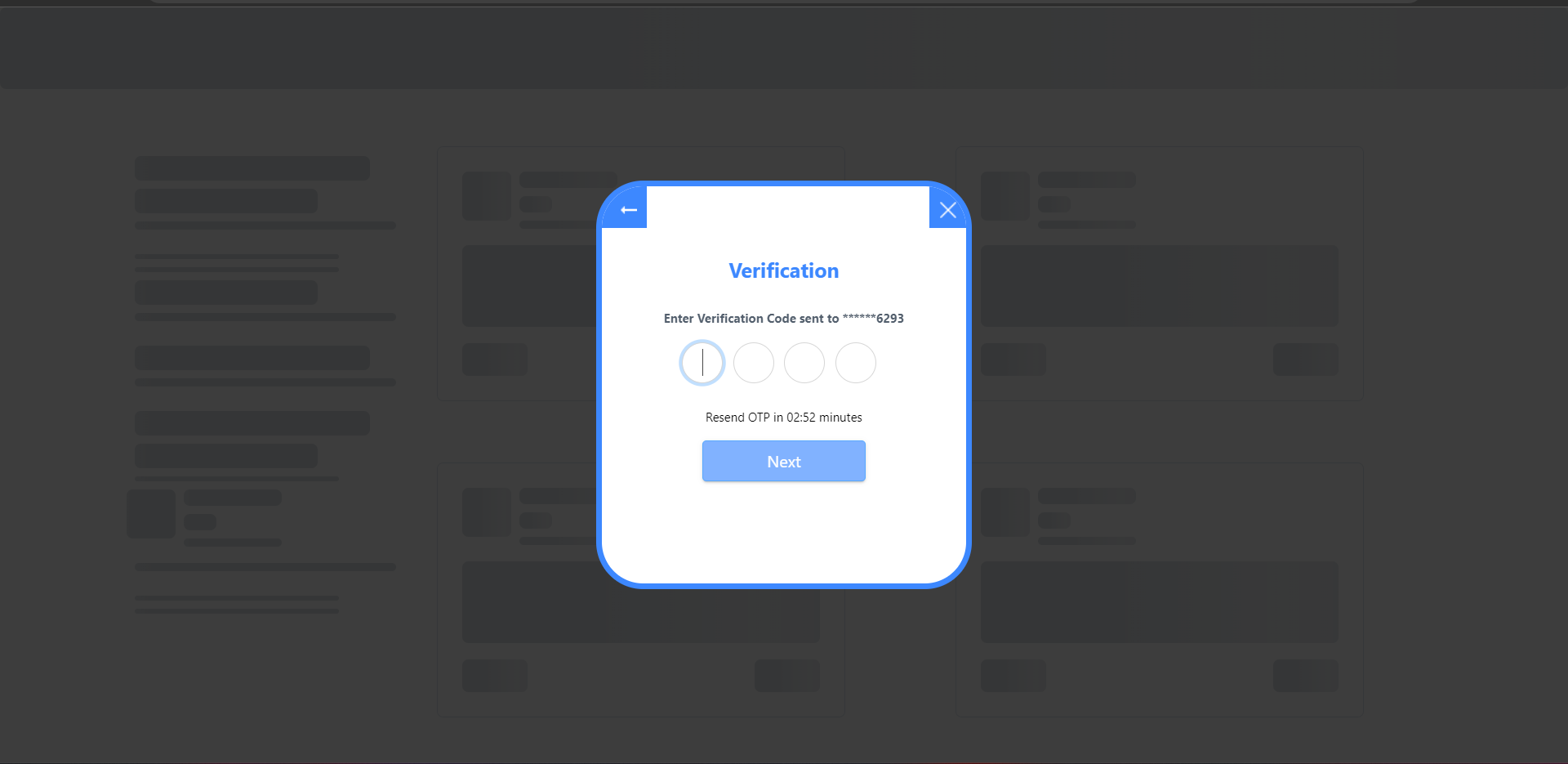 7. Enter the OTP code sent to the registered phone number or email to complete the registration.