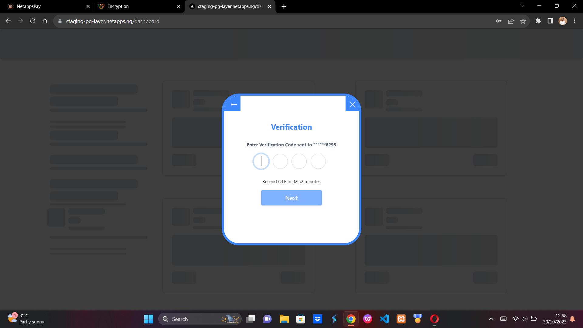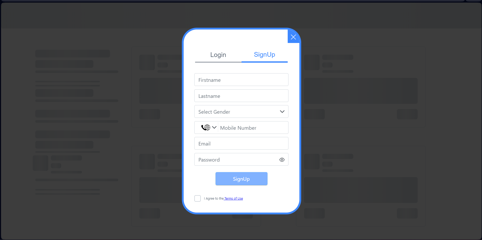 - Enter the OTP code sent to the registered phone number or email to complete the registration.
