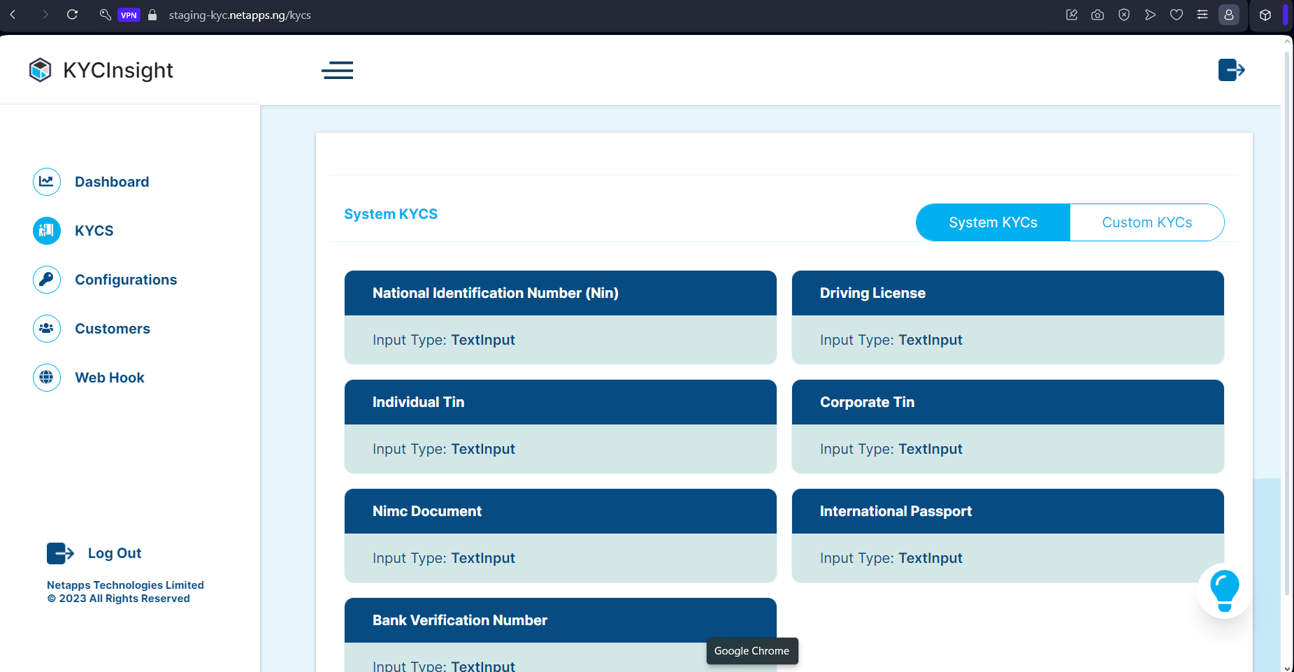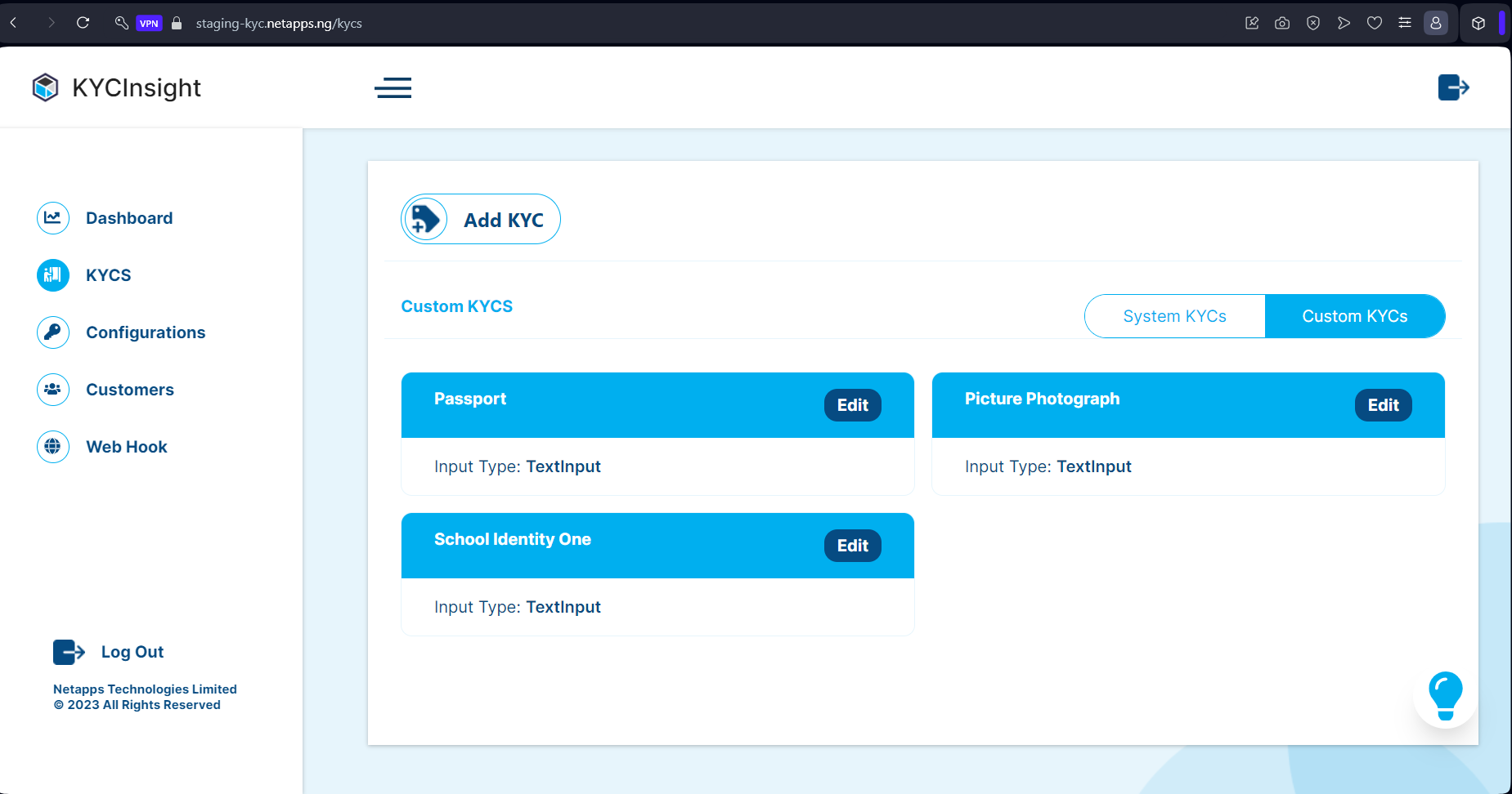 Custom KYC is tailored or customized to meet the specific needs and requirements of your business. To view your custom KYCs, follow the steps below: