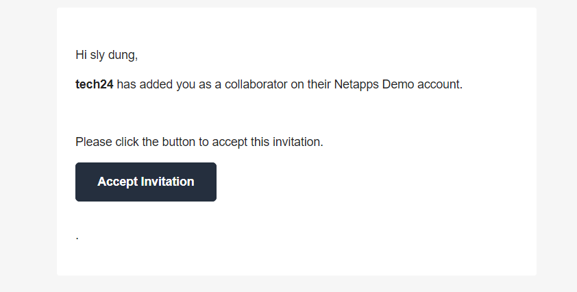 - An invitation email is then sent to the invited user to accept the invitation.
